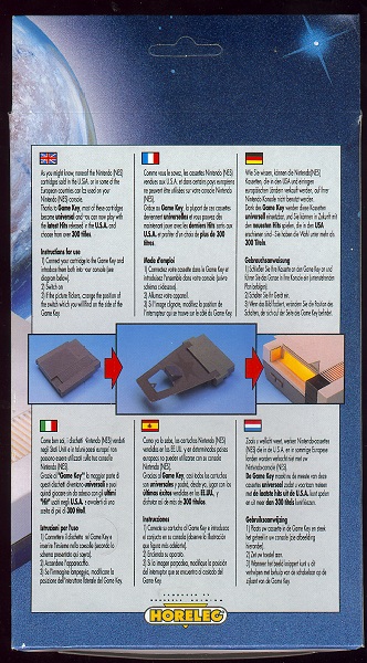 On one side of the adaptor is a small 3-way switch for full compatibility, which I guess will make it useful for playing European NES carts on a US Nintendo Entertainment System also. The packing and shape of the GameKey V2 reminds me of another converter which was available, being sold here in Denmark, for playing import NES games. I will make a page about this conterver later on.