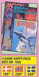 The games sold by the Scandinavian Computer Club was a good mix of licensed and unlicensed NES games, but mainly unlicensed games and this was actually my first encounter with the world of unlicensed Nintendo games, which I actually though were some sort of Atari games at first. Some of the games I got from these happy packs were Vindicators (Tengen), Menace Beach (Color Dreams - Black cart version), Moon Ranger (Bunch Games - Black cart version), F-15 City War (American Video Entertainment), Krazy Kreatures (American Video Entertainment), Dragon Spirit (Bandai), Death Race (AGCI) and ShockWave (AGCI)